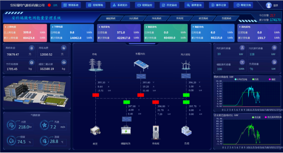 能量管理策略采用基于博弈論的功率協調分配技術,基于在通用設計平臺和運行環境上開發能量協調控制策略,實現配網、分布式可再生能源發電、儲能裝置、充電設施之間能量的互動融合和靈活調配。系統在保障變壓器安全運行前提下進行優化調控,有效消除峰谷差、平滑負荷,短時柔性擴容,提高電力設備運行效率、補償負荷波動。同時在不允許對電網送電的情況下還可以通過調節光伏發電、儲能充電、調節充電樁等方式,有效防止逆功率。