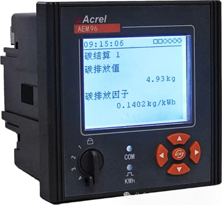 AEM96三相多功能碳電表,集成三相電力參數(shù)測量、分時電能計量及碳排放統(tǒng)計,根據(jù)不同使用工況的電碳折算因子集成碳結(jié)算功能,包含12組碳排放值及對應(yīng)的碳排放因子,它能夠?qū)崟r計算并給出企業(yè)生產(chǎn)用電帶來的碳排放量,讓碳排放像電能一樣方便記錄,配合安科瑞碳資產(chǎn)管理平臺,大大簡化企業(yè)的碳排放統(tǒng)計工作。